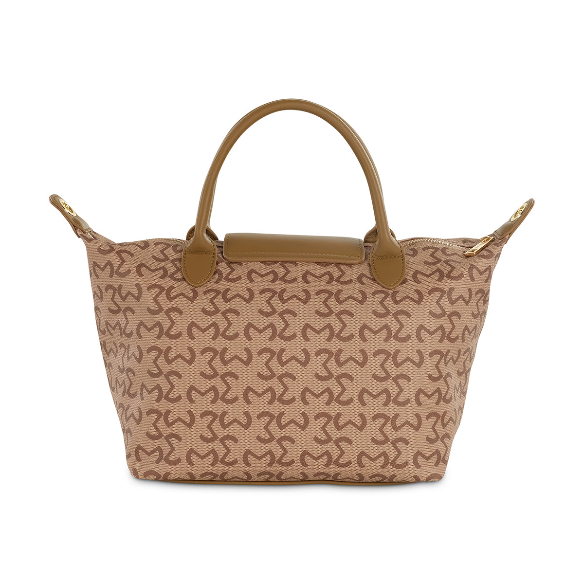 Discover effortless charm with our two-tone mini tote, featuring a distinctive all-over monogram print in light beige. Complemented by smooth tan handles and trim, this bag offers a stylish top-flap closure with a chic metallic accent. Complete with a versatile detachable strap, it's the perfect everyday companion for a refined look.