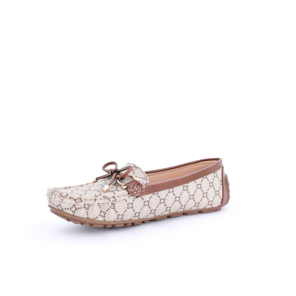 Slip your foot into comfort and style with this classic moccasin which showcases a new monogram print on the upper, has a metal trim which makes the whole shoe elegant and a comfort footbed that will keep your feet relaxed all through the day.