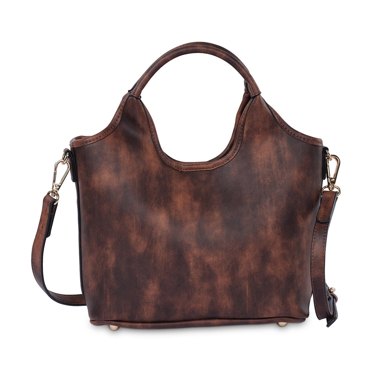 A perfect blend of style and practicality, the 'Carey Mini' woven tote is a versatile choice for any season. Its rich brown texture and sculptural top handles create a chic, elevated look. This bag comes with a matching clutch, making it a perfect two-in-one accessory for effortlessly transitioning from day to night.