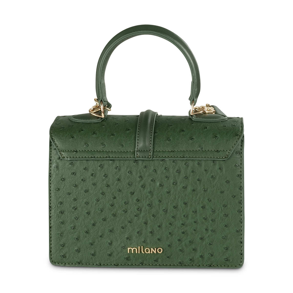 Elevate your style with our luxurious khaki structured flap bag. Featuring a sophisticated ostrich print texture and a distinctive front flap with a prominent gold-tone clasp, this bag exudes timeless elegance. Complete with a sleek top handle and a versatile detachable strap, it's perfect for any occasion.