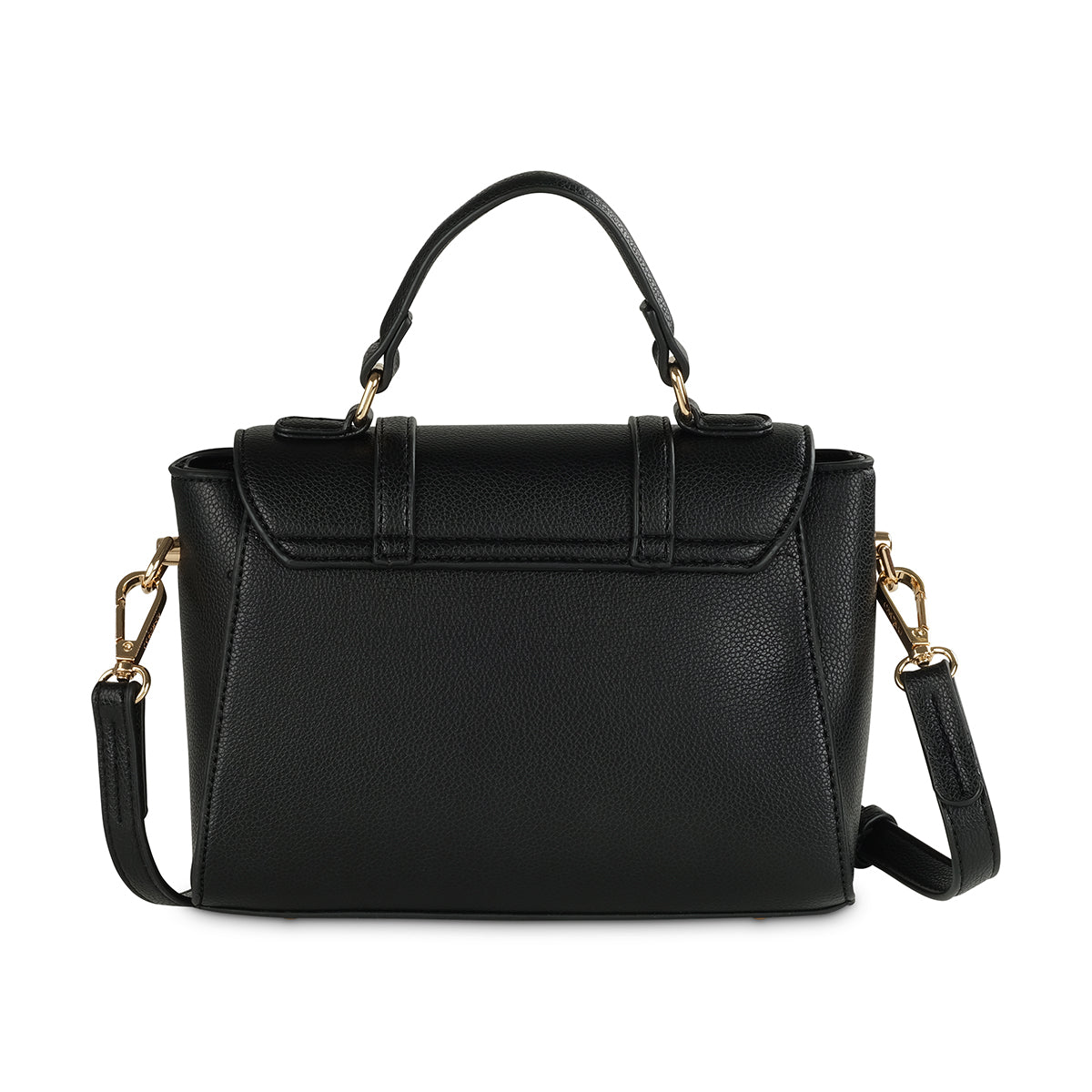 Elevate your everyday with our sophisticated black structured flap bag. Crafted from a premium textured material, it features elegant vertical strap details with gold-tone accents and a prominent "Milano" logo. With a comfortable top handle and a versatile detachable strap, this bag is perfect for a polished and functional look.
