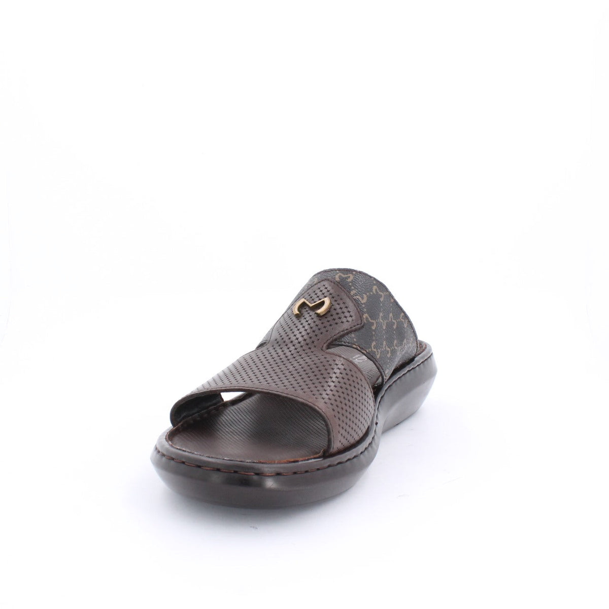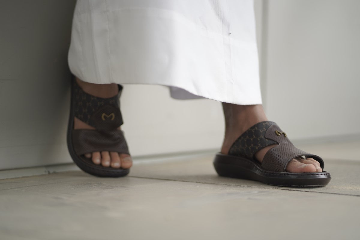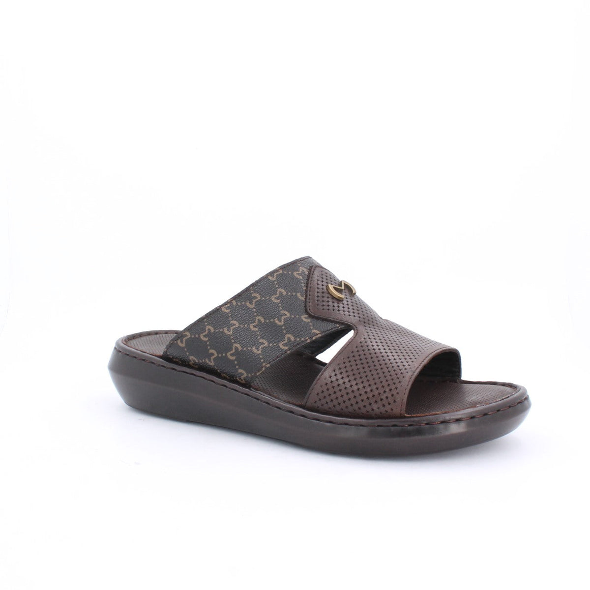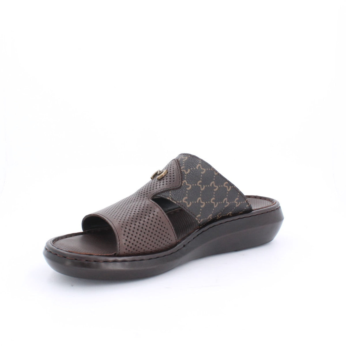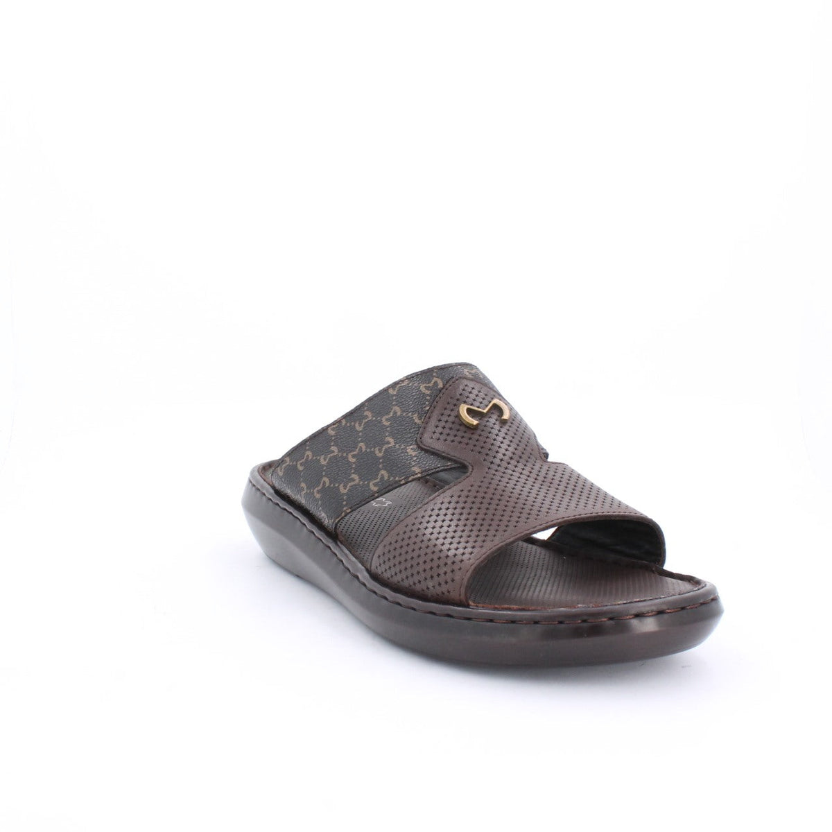 صندل جلد مفتوح من الطراز العربي تقليدي مزين بحواف معدنية من ميلانو.