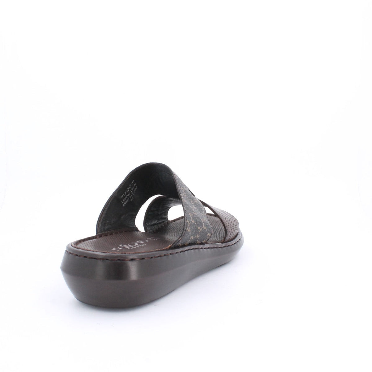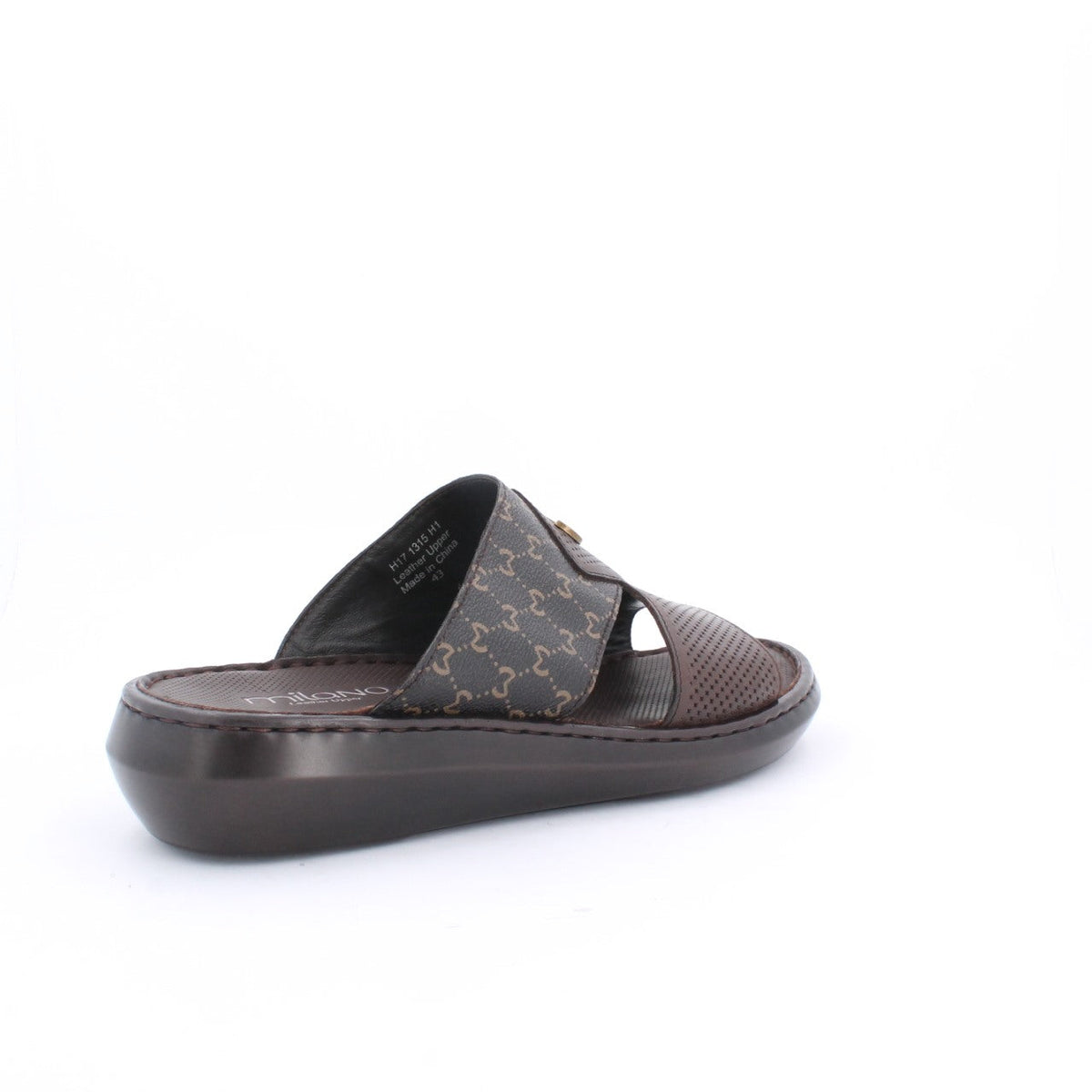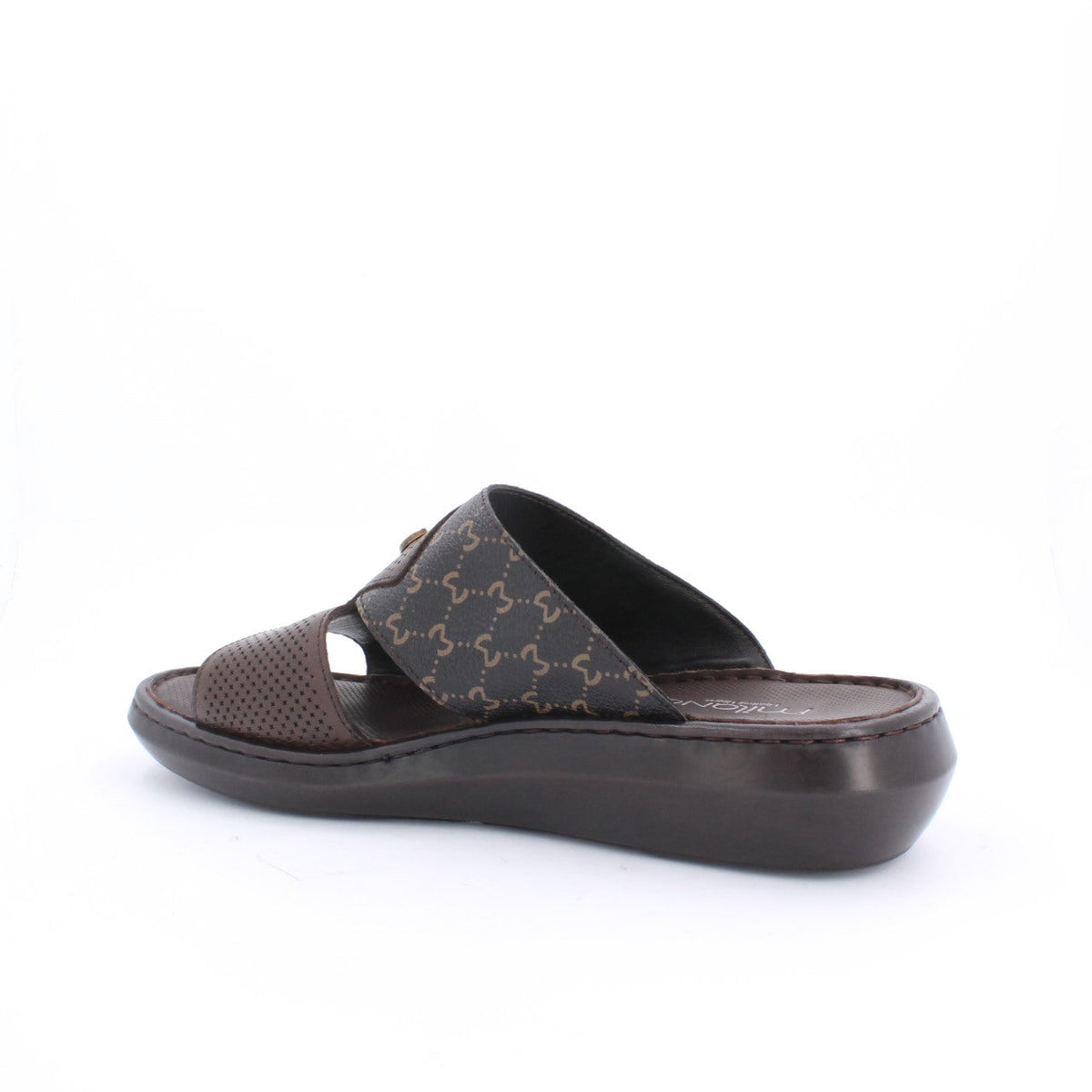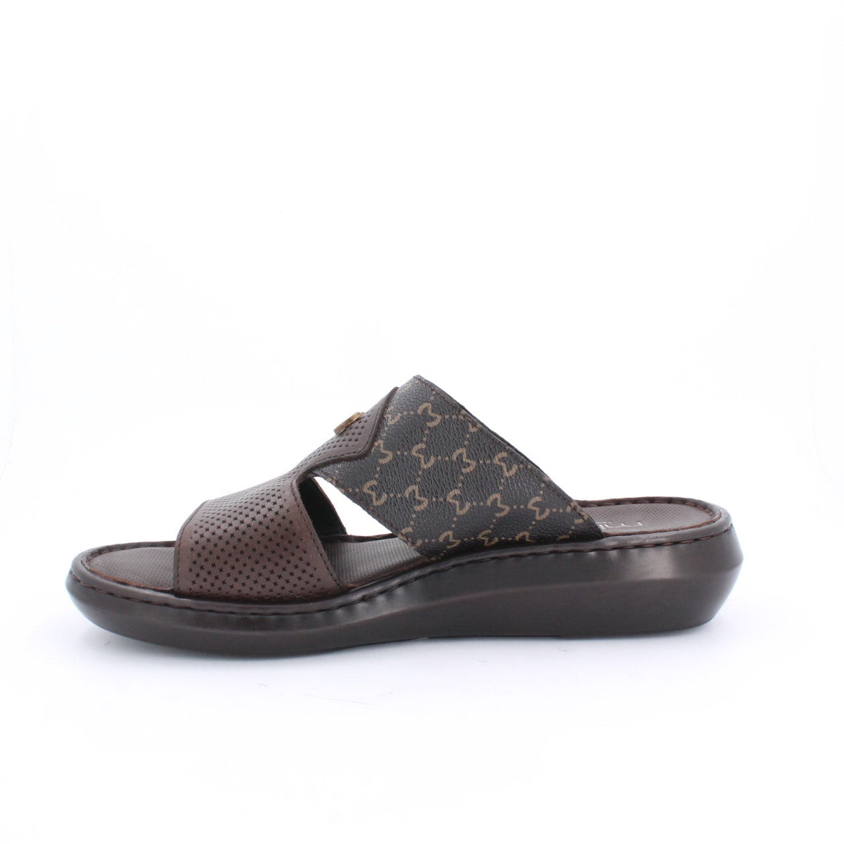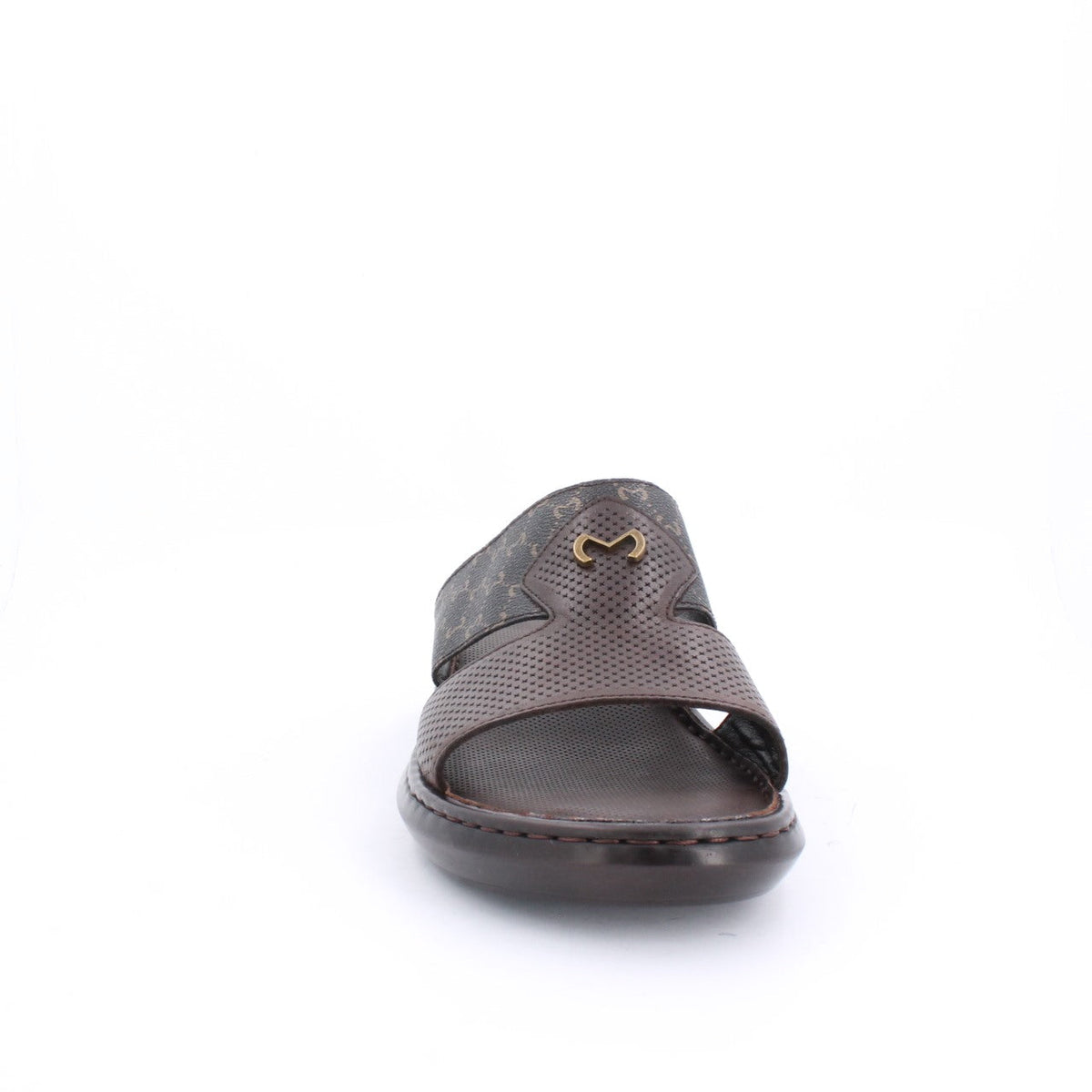 صندل جلد مفتوح من الطراز العربي تقليدي مزين بحواف معدنية من ميلانو.