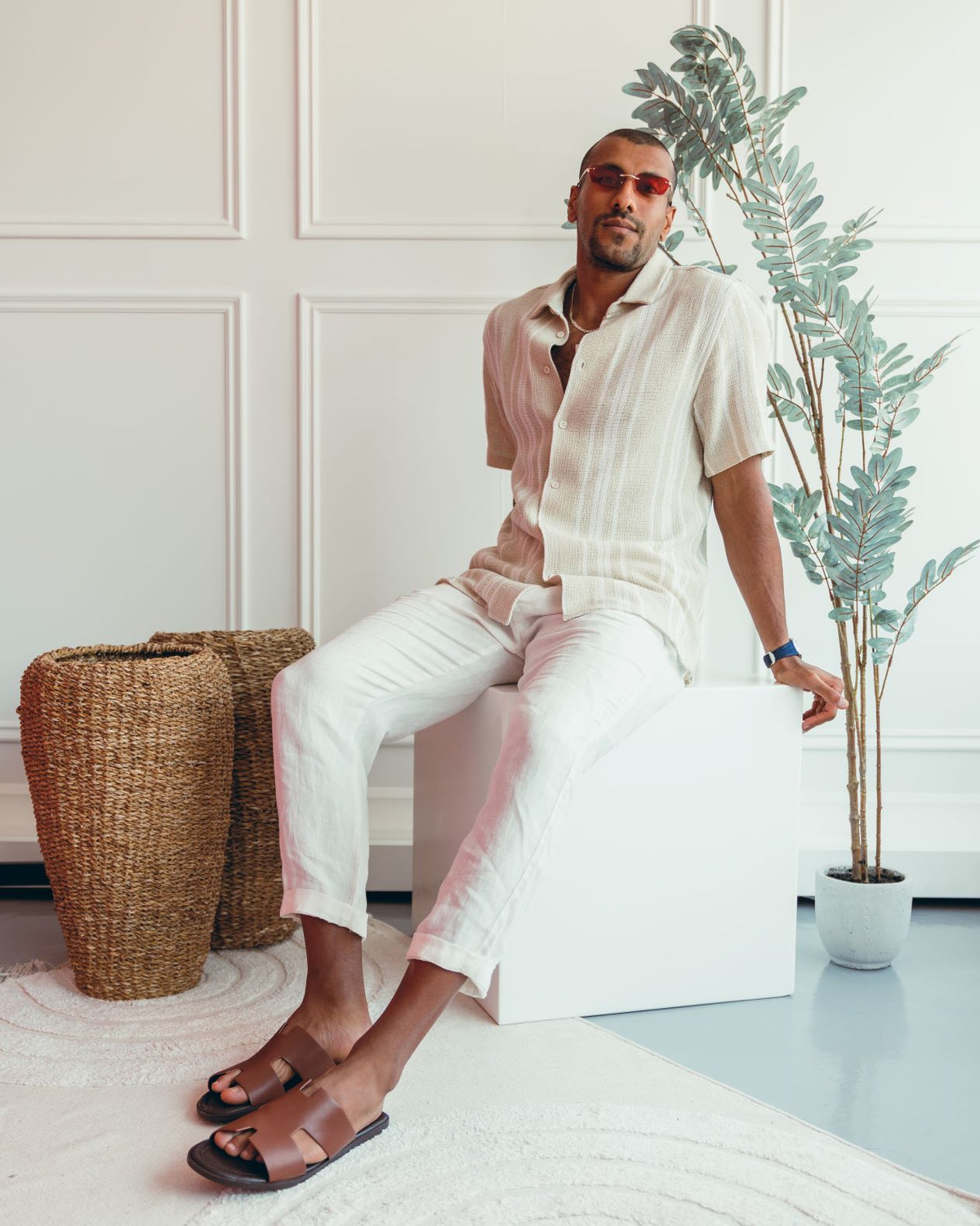 صندل مفتوح من الخلف بطبقة علوية ناعمة وجورب مريح ونعل بشعار ميلانو. الخامة - جلد صناعي