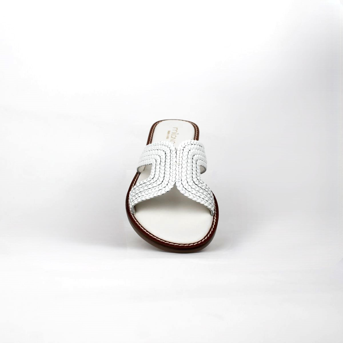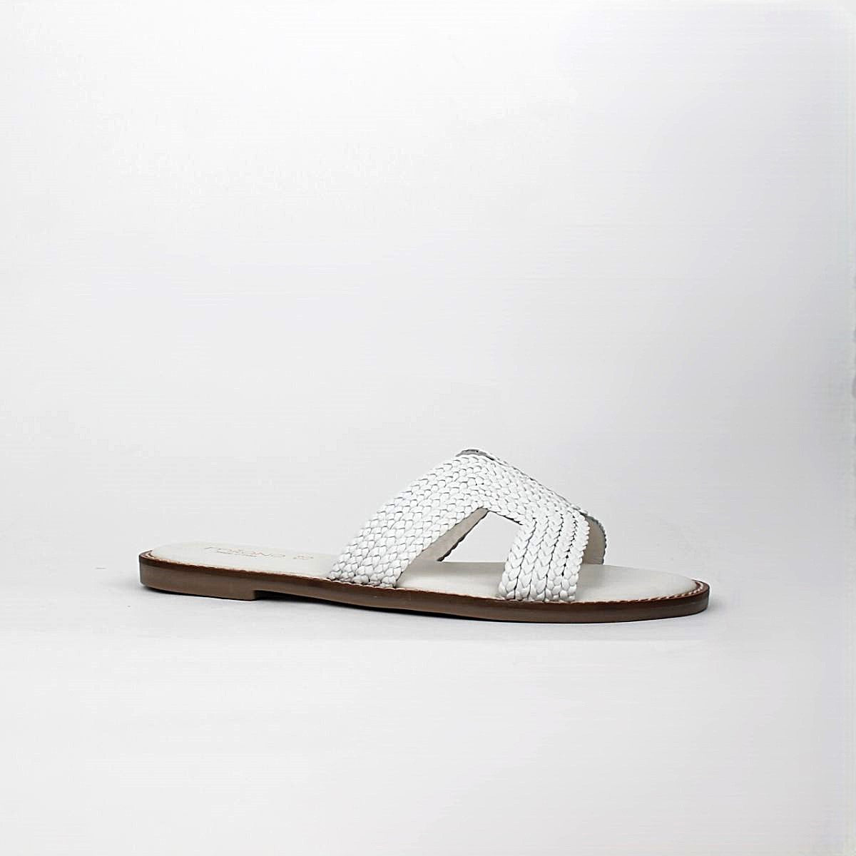 Crafted with a stylish braided leather strap across the foot, these easy slip-on flats are perfect for warm-weather days. The simple yet elegant silhouette makes them a versatile choice for beach outings, poolside lounging, or casual strolls.