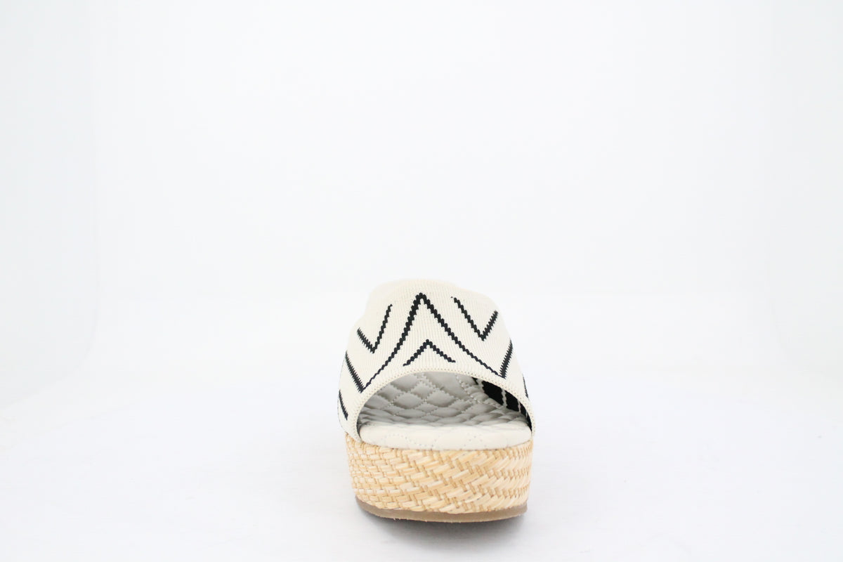 Make a statement with these stylish wedge mules, featuring a bold zigzag pattern on the wide knitted upper strap. The classic woven espadrille-style wedge offers comfortable height, while the quilted footbed adds a touch of sophistication, perfect for a chic and easygoing look.