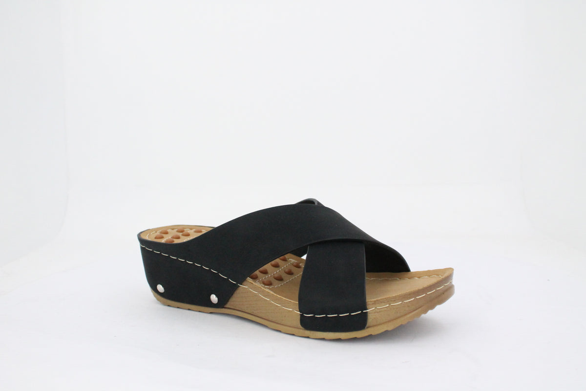 Step out in style with these wedge sandals featuring a cross-strap upper and wedge sole. Designed for ultimate comfort, they boast a comfort pimple insole that provides a gentle massage with every step, blending fashion and ease for your everyday looks.