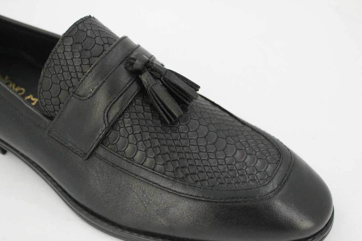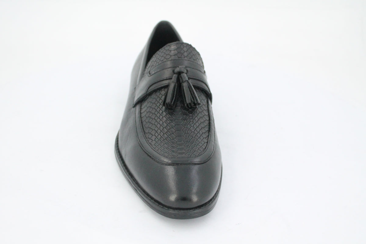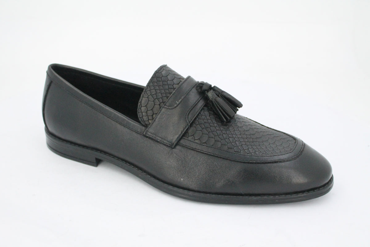 Step into timeless sophistication with these premium men's formal shoes, crafted from high-quality genuine leather. Designed for the modern gentleman, these loafers feature a sleek silhouette complemented by a classic tassel detail on the vamp, adding a touch of refined charm alongside a patterned upper on the vamp area. The polished finish enhances their luxurious appeal, making them perfect for business meetings, formal events, or upscale evenings out. With a cushioned insole and durable outsole, they offer both style and comfort in every step.