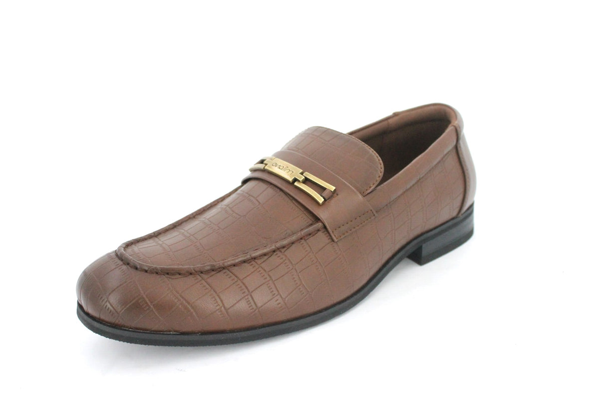 Elevate your formal wardrobe with this timeless leather like loafer, crafted for the modern gentleman. Featuring a sleek silhouette and a high-shine finish, this shoe is defined by its elegant metal trim detail across the vamp—adding a refined touch of sophistication. The cushioned insole and durable outsole ensure all-day comfort, making it perfect for business meetings, evening events, or upscale occasions. Pair it effortlessly with tailored suits or dress trousers for a polished, confident look.