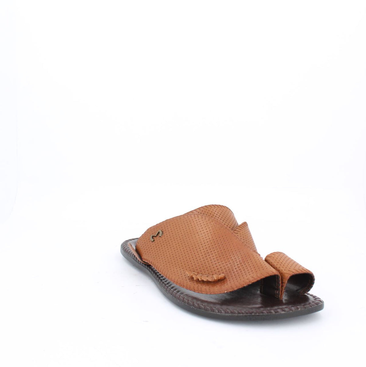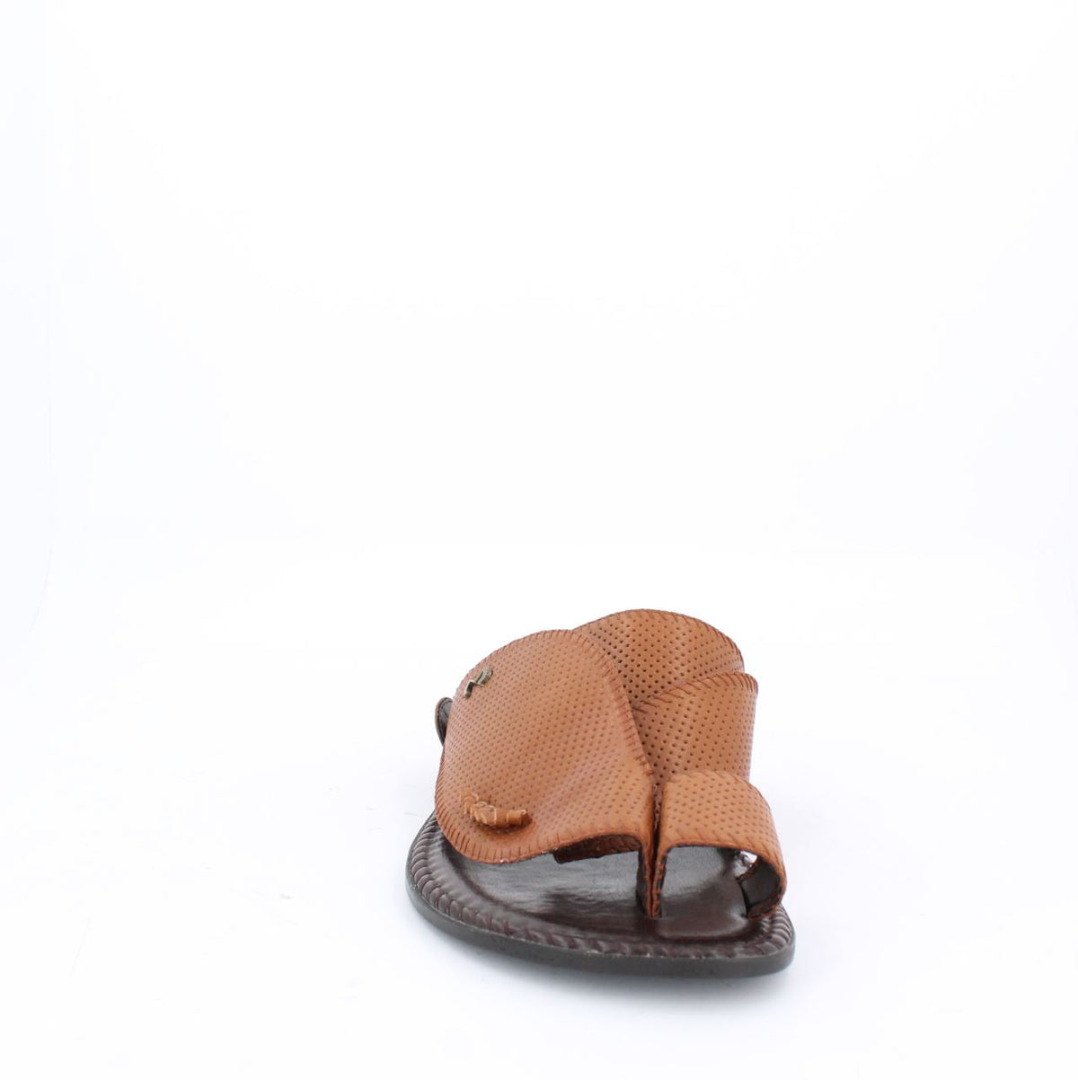صندل عربي من الجلد التقليدي بجزء علوي مثقوب وحواف مفصلة.