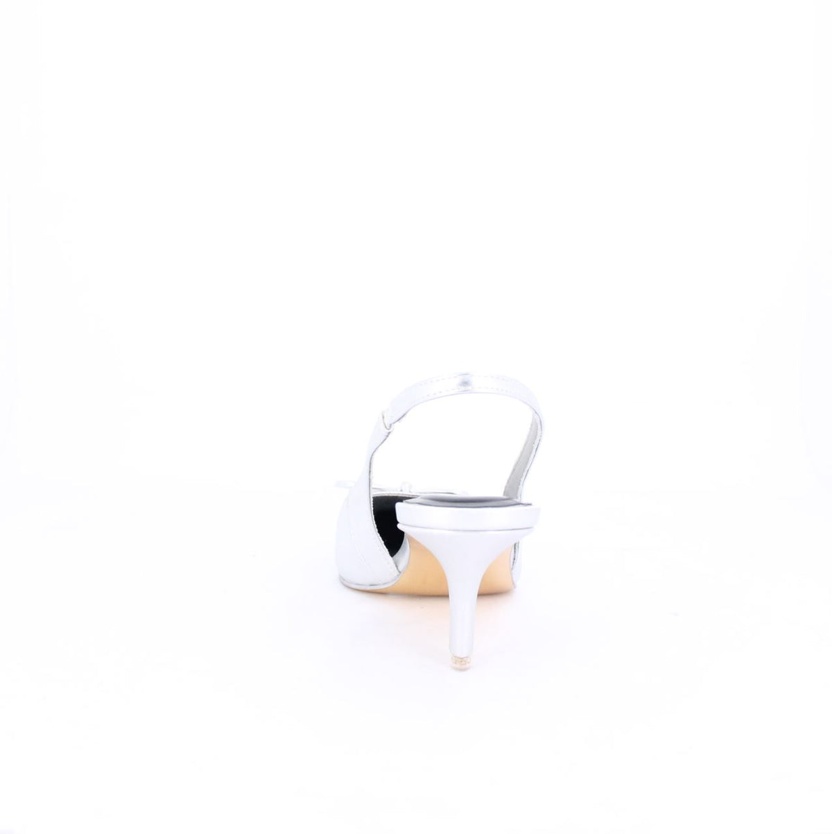 Shine with every step in these elegant AMBER heel Bow-Detailing slingback. Crafted in a radiant silver tone, these slingback pumps feature a refined pointed toe and a delicate bow detail on the vamp, adding a touch of feminine charm. The slender heel and gold-tone sole provides a sophisticated lift, making them perfect for adding a glamorous touch to any ensemble, from special occasions to elevating your everyday style.