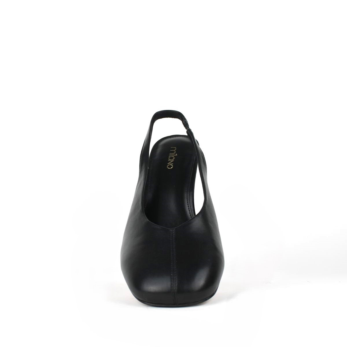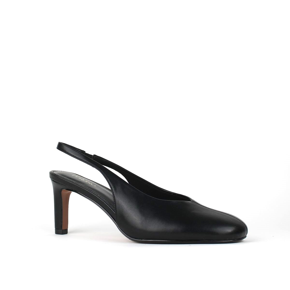 Elegant slingback pumps feature a square toe and a flared block heel for a modern take on a classic silhouette. The elasticated strap ensures a secure and comfortable fit, while the sleek design makes them versatile for both work and evening wear.
