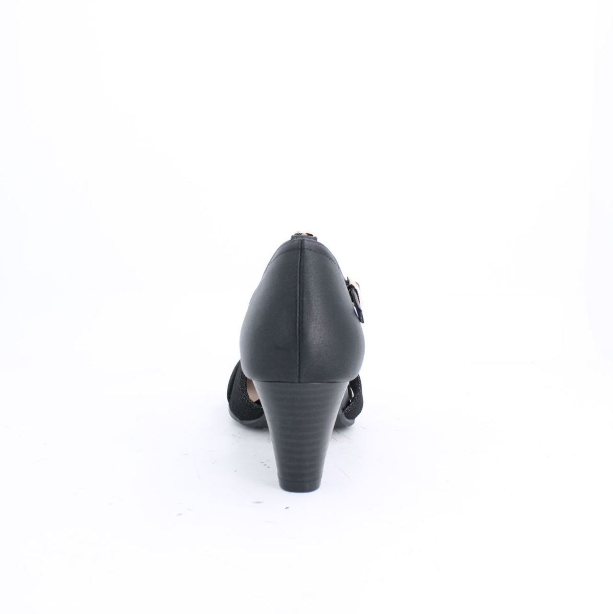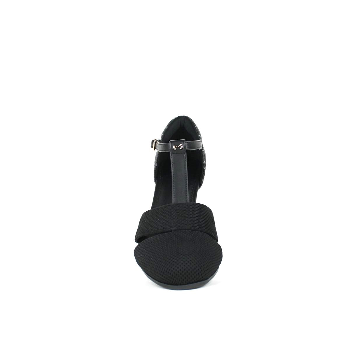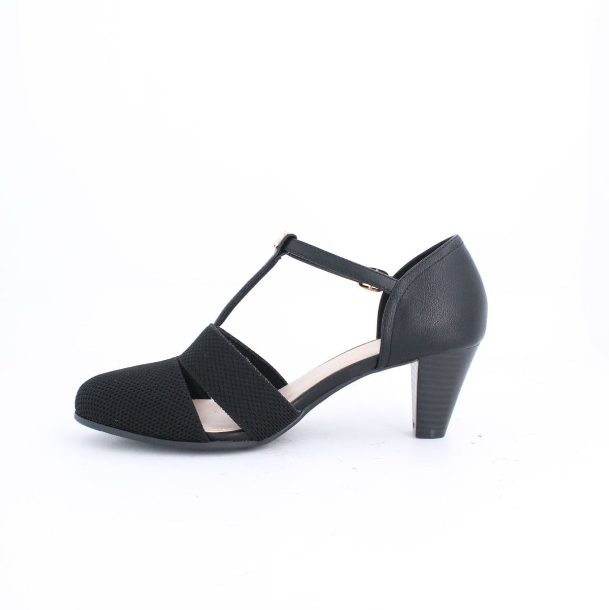 Refined and stylish, these women's T-strap pumps feature a unique two-tone design, with a classic mesh texture on the vamp and an elegant monogram pattern on the back. The comfortable mid-height cone heel with a wood-grain finish provides a stable lift, while the round toe offers a more comfortable fit than traditional styles. Secured with a T-strap and an adjustable buckle to ensure a personalized and secure fit, making them a perfect blend of elegance and functionality.