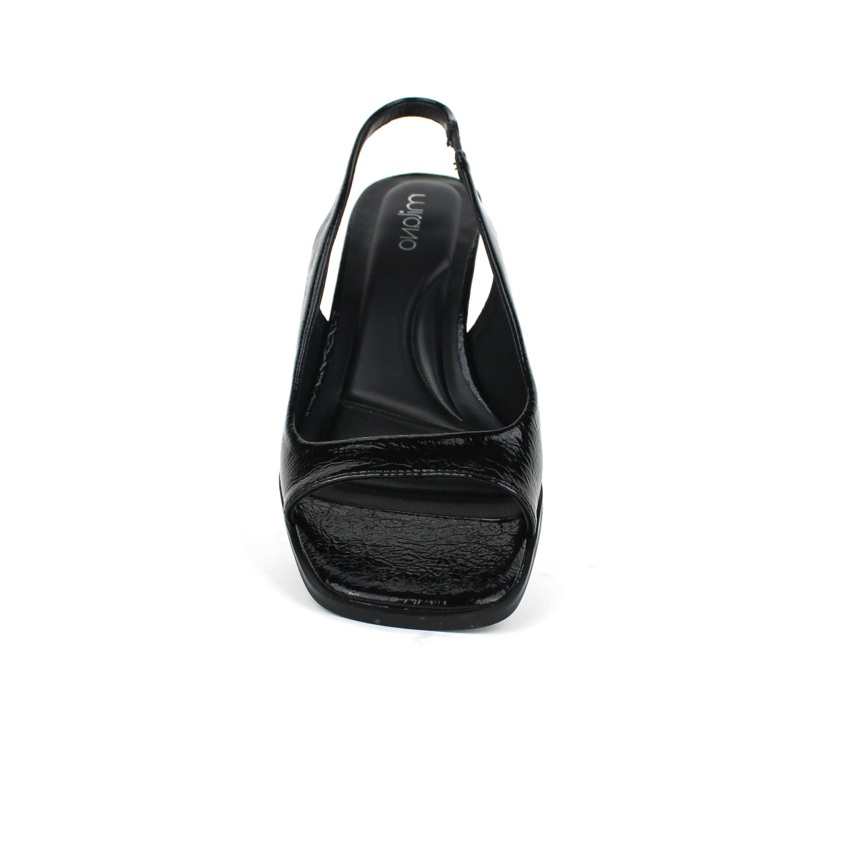 Effortless elegance with these open-toe slingback sandals. Crafted in a sophisticated crinkled texture material, these sandals feature a chic open-toe design and a comfortable kitten heel, providing a perfect balance of style and wearability. Ideal for both professional settings and dressy casual events.
