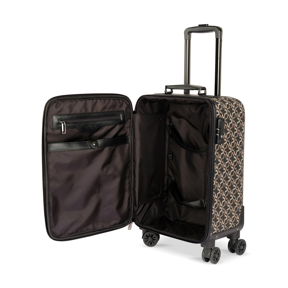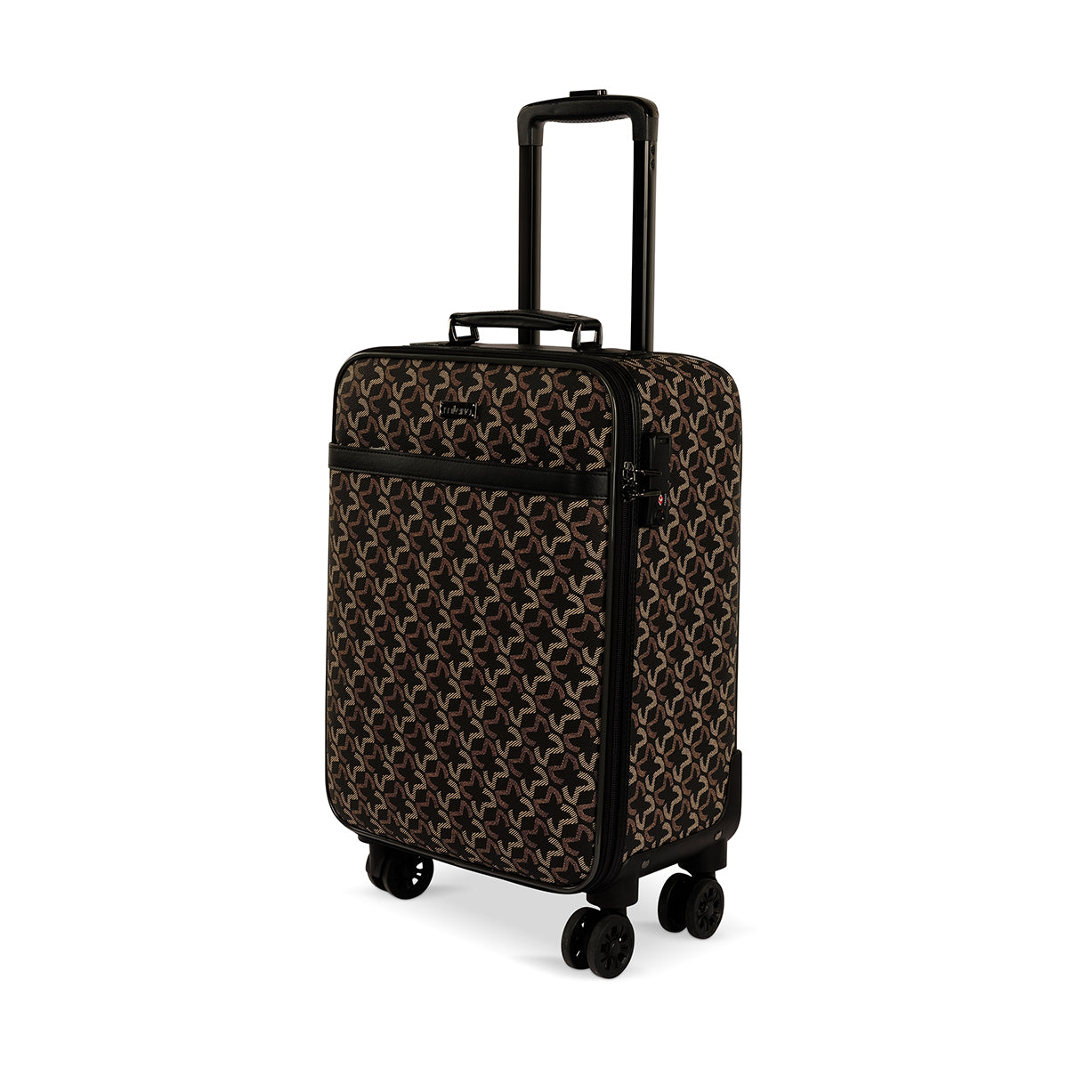 Make every journey effortless with our sleek black hardside suitcase, featuring an elegant all-over monogram design. Built for strength and convenience, it offers smooth 360° spinner wheels, a telescopic handle for easy maneuvering, and a secure combination lock—your perfect companion for stress-free travel