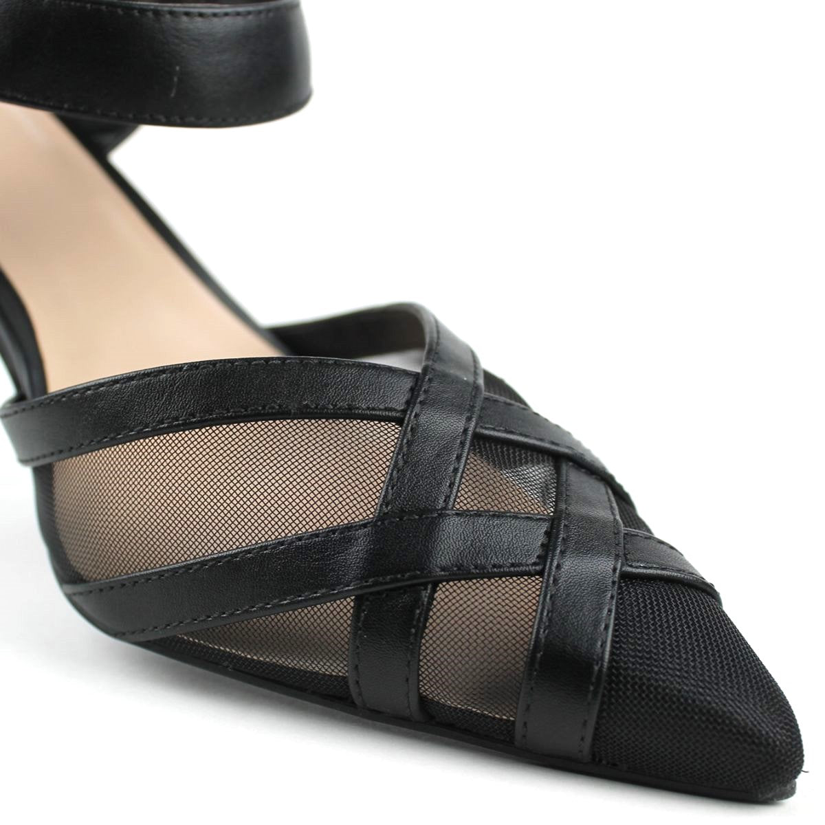 A stunning blend of modern elegance and bold design, this slingback heel is a true statement piece. These has a unique combination of solid and sheer mesh materials, creating a striking visual contrast. Featuring a pointed toe, a sleek and architectural heel, and a stylish elasticized slingback strap, this shoe offers both a sophisticated look and a comfortable, secure fit for any special occasion.