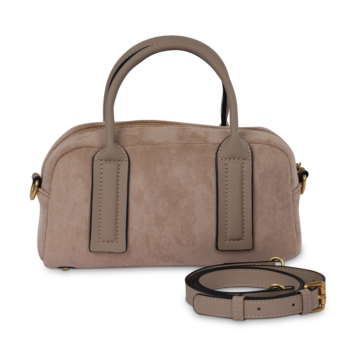 Inspired by timeless design, the 'Milano' duffle is your new go-to for a sophisticated look. This bag is crafted from a soft beige material, accented by classic contrast trim and polished gold-tone hardware. The spacious interior and iconic shape make it a versatile accessory that's both stylish and functional for any outing.