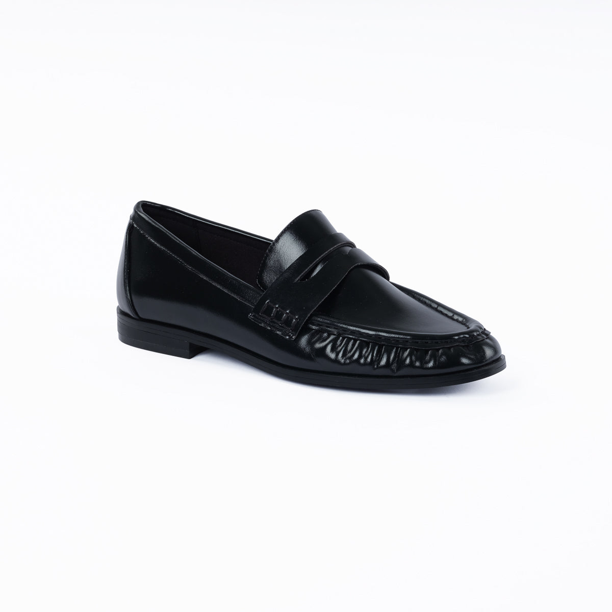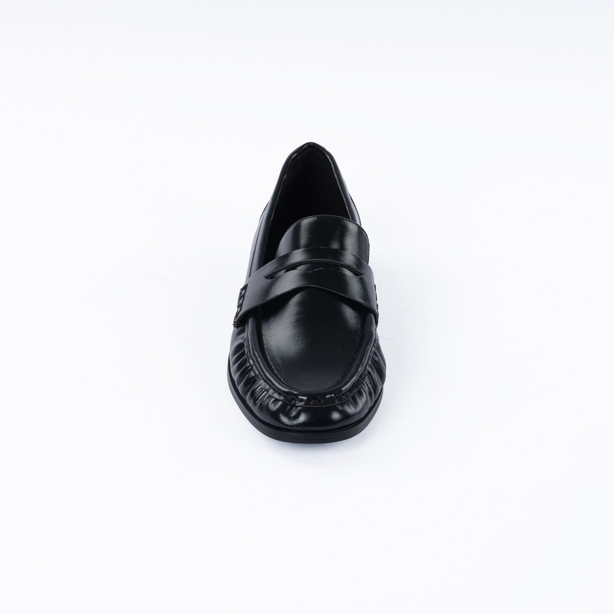 These classic penny loafers are a timeless addition to any wardrobe. They feature a traditional moc-toe design and a distinctive saddle strap across the top. The sturdy, low stacked heel and durable construction make them a versatile and comfortable choice for a polished look, perfect for both professional settings and casual outings.