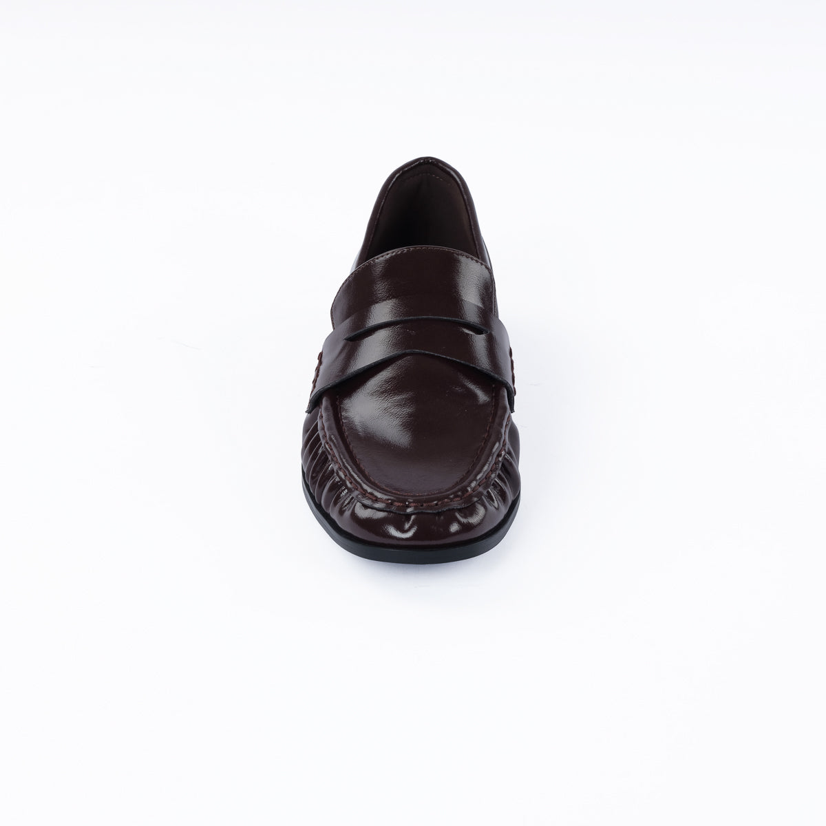 These classic penny loafers are a timeless addition to any wardrobe. They feature a traditional moc-toe design and a distinctive saddle strap across the top. The sturdy, low stacked heel and durable construction make them a versatile and comfortable choice for a polished look, perfect for both professional settings and casual outings.