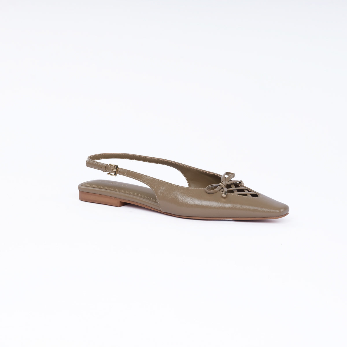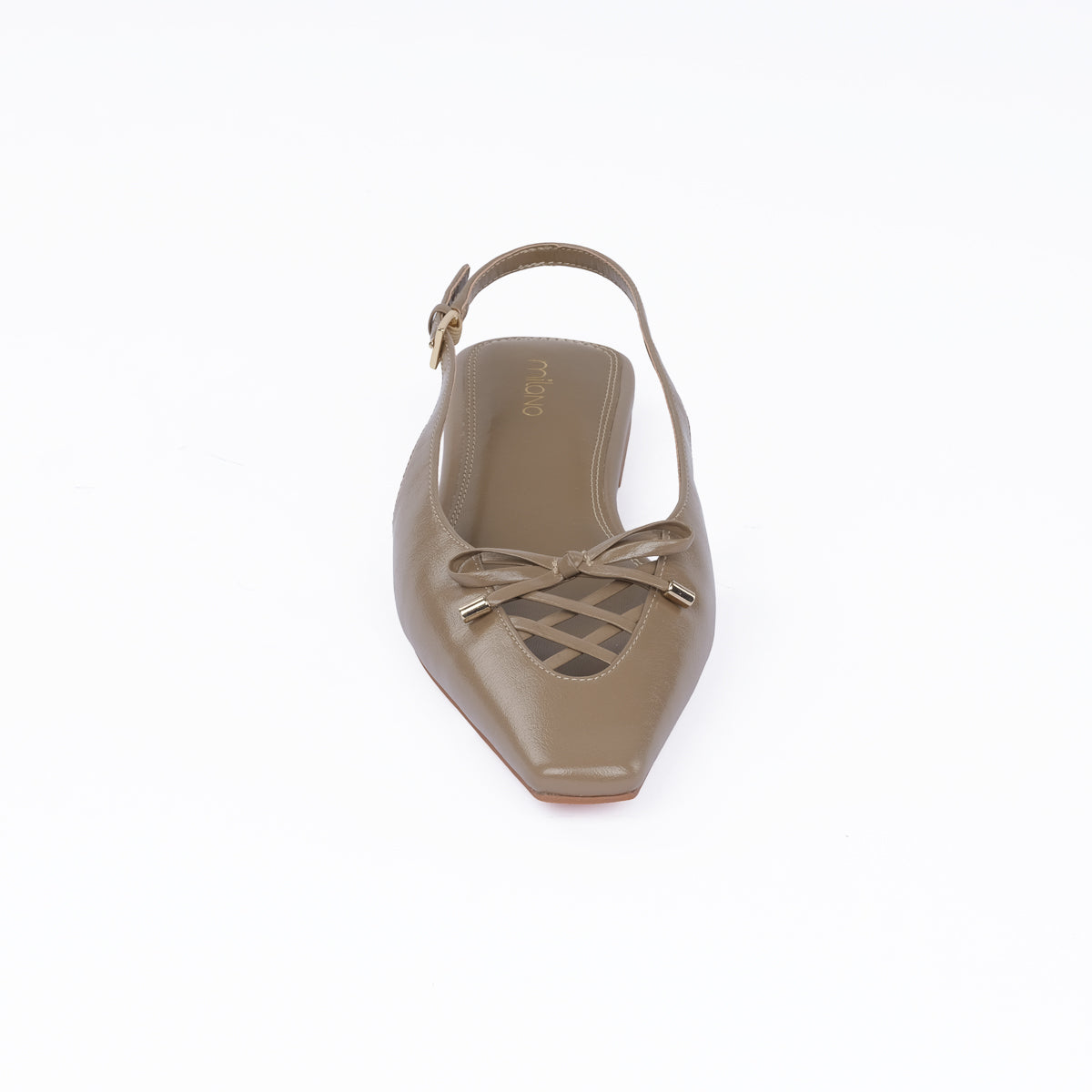 These Tabea flats feature a corset-inspired upper design with a chiseled toe and a small bow detail, offering a blend of classic elegance and modern style. The adjustable buckle strap ensures a secure and comfortable fit