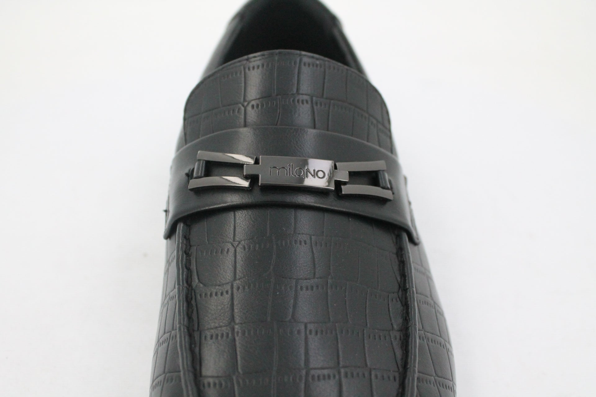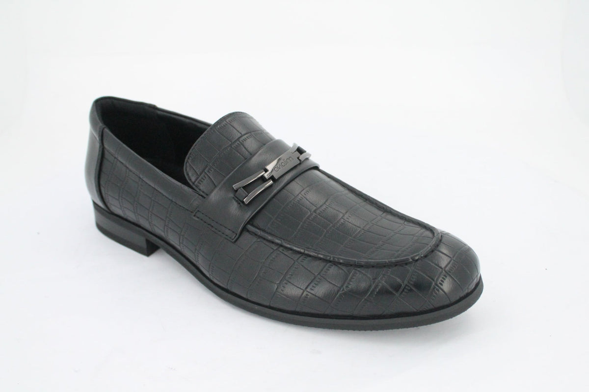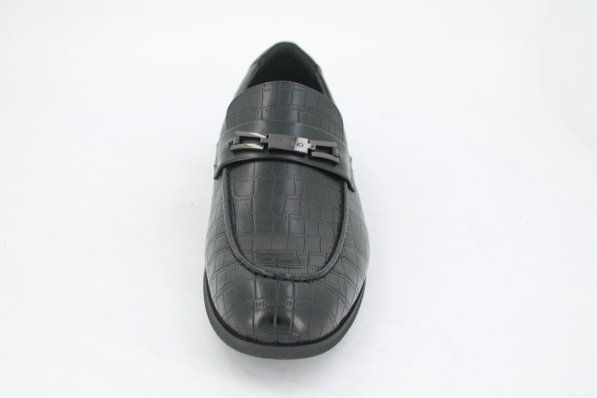 Elevate your formal wardrobe with this timeless leather like loafer, crafted for the modern gentleman. Featuring a sleek silhouette and a high-shine finish, this shoe is defined by its elegant metal trim detail across the vamp—adding a refined touch of sophistication. The cushioned insole and durable outsole ensure all-day comfort, making it perfect for business meetings, evening events, or upscale occasions. Pair it effortlessly with tailored suits or dress trousers for a polished, confident look.