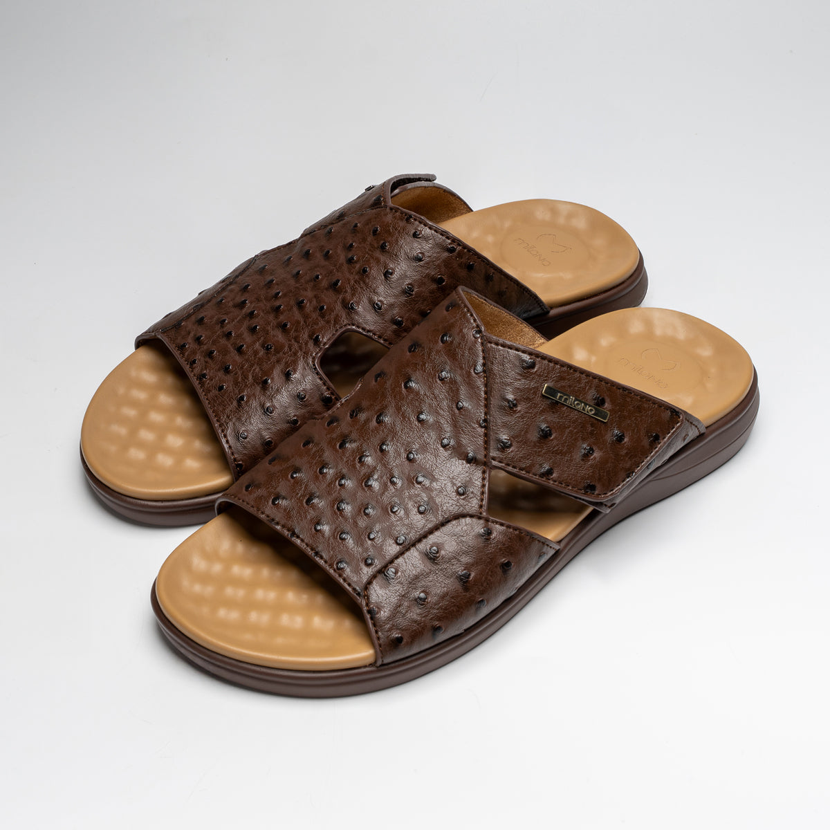 The Amari sandal is a reinvented style of one of our best selling kit Carlo which has the comfort element embedded aesthetically and the upper has a soft leather like material that has an embossed ostrich print which gives a distinctive vibe. Style these with some of your casual attire.