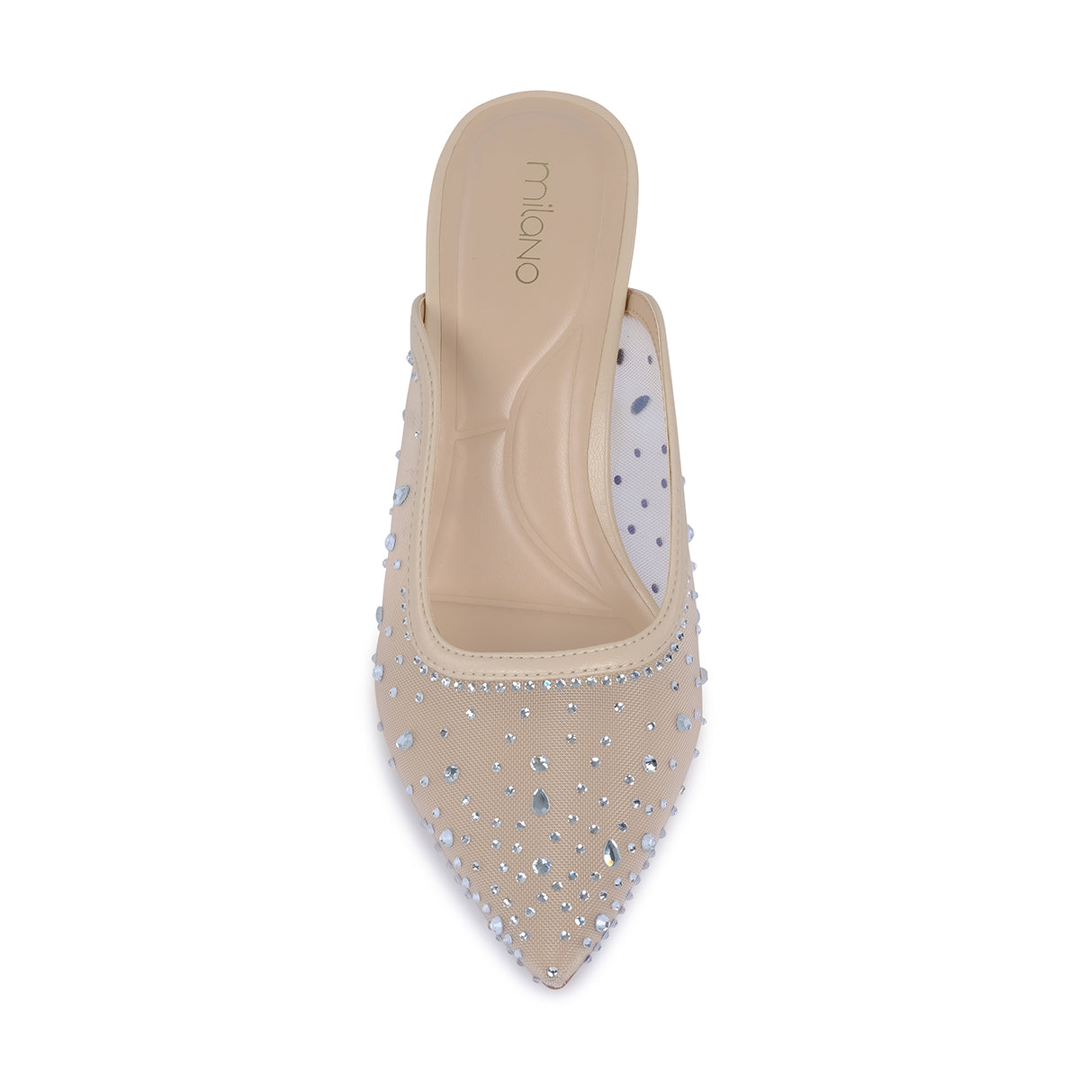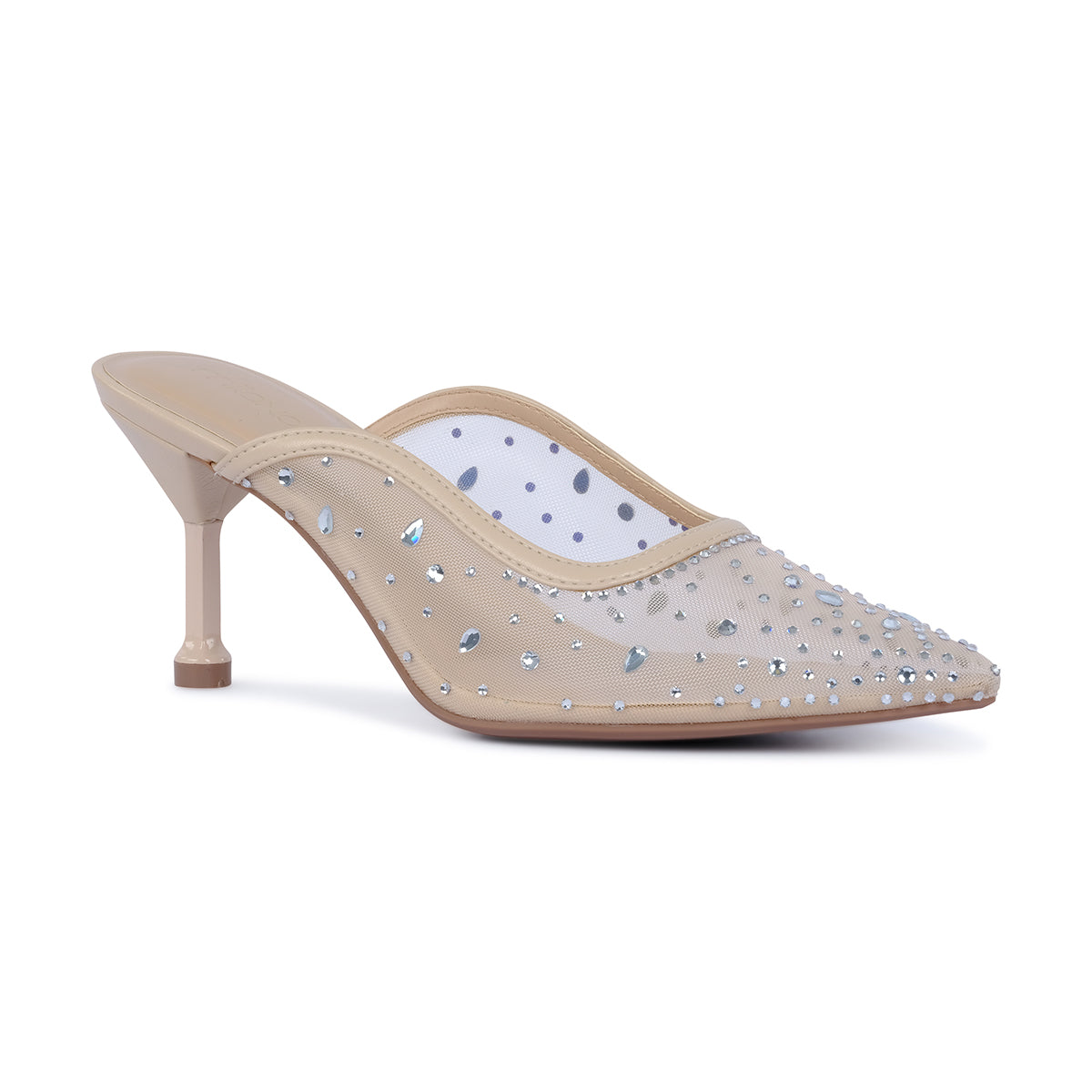 Elegant mule heels featuring a pointed toe and sparkling crystal embellishments. Designed with a slim stiletto heel for a glamorous finish, perfect for parties and special occasions.