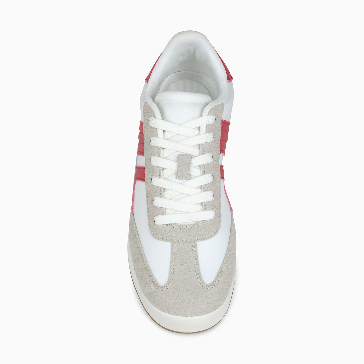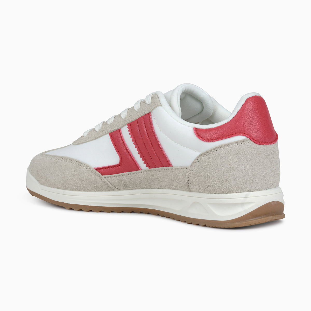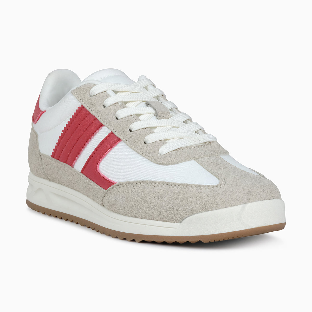 Sporty sneakers with a classic design featuring red accents and beige suede overlays. Built with a cushioned insole and durable rubber sole for comfort and everyday wear