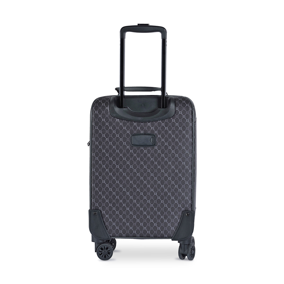 Travel with confidence with the 'Kenji' spinner suitcase. Designed for both style and practicality, this durable carry-on features a sophisticated dark grey monogram, textured finish and secure zipper closures. The telescopic handle and four multi-directional spinner wheels provide seamless mobility, while the spacious interior and exterior pocket offer smart organization. Complete with an integrated lock for security, the 'Kenji' is your go-to for hassle-free journeys