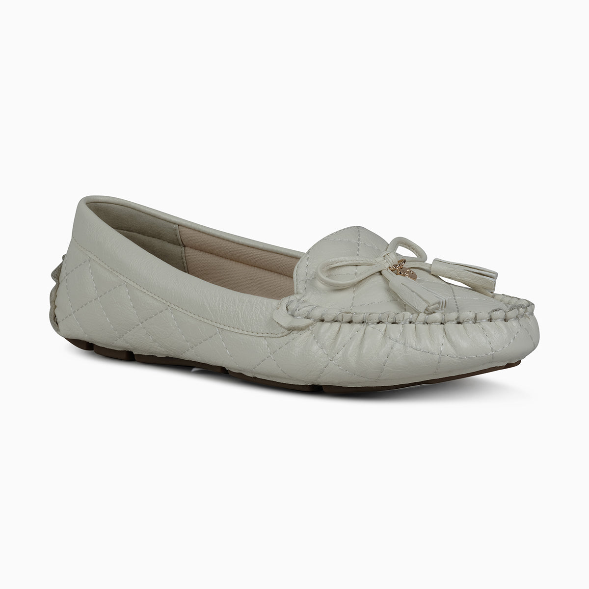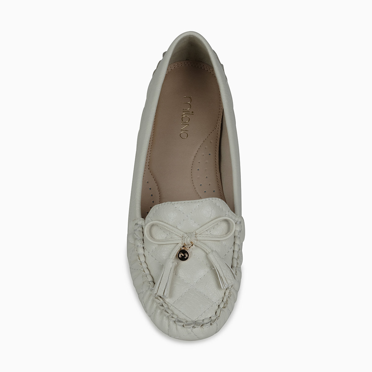 Chic quilted slip?on moccasin, featuring a soft faux?leather finish, cushioned insole, and decorative bow detail. Lightweight, flexible, and perfect for everyday comfort.