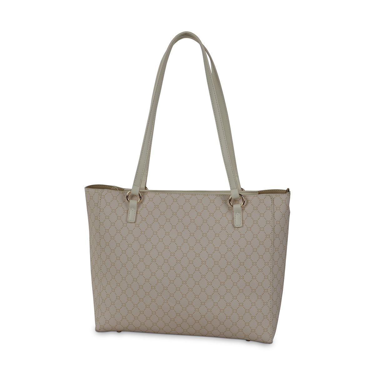 A stylish, Beige shopper in a classic milano monogram, with a contrast detachable printed scarf. Featuring multiple compartments to accommodate a small laptop and all your daily essentials.