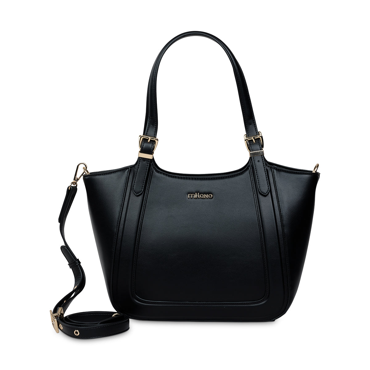 This versatile black handbag showcases a sleek, modern design with clean lines, our signature Milano branding and subtle detailing. Equipped with a top handle and a spacious multi-compartment interior, it offers both style and functionality for everyday use. Matching Items are available to complete your look, making this bag an effortless addition to any wardrobe. e