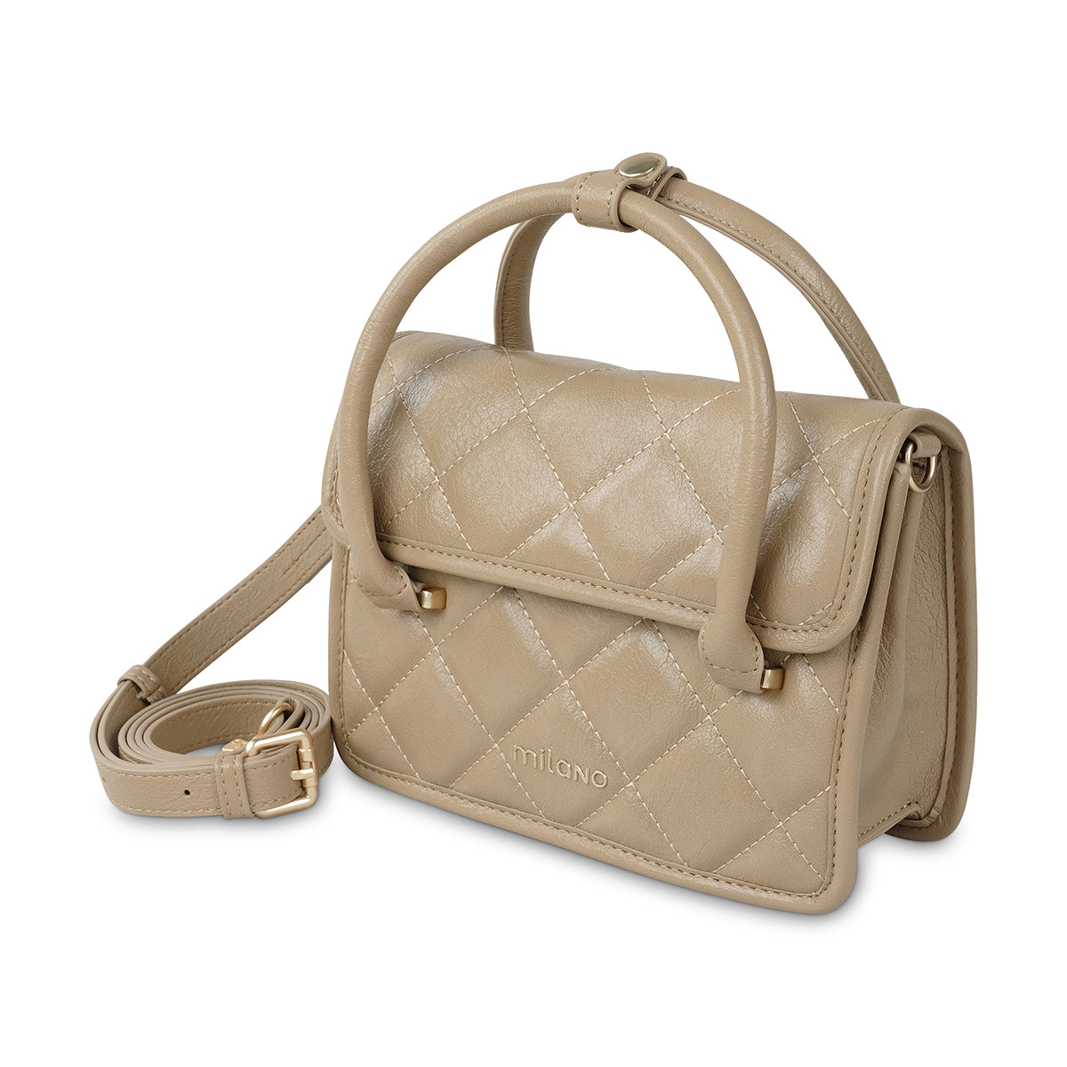 Elevate your style with this chic quilted crossbody. Featuring a sleek flap design and luxe gold-tone hardware, this compact bag is perfect for carrying your essentials in a sophisticated way. The fixed crossbody strap ensures easy wear, while the structured silhouette makes it ideal for both casual and dressy looks.