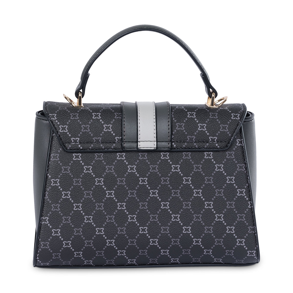 Make a statement with this sophisticated monogram flap bag. The classic dark gray hue is complemented by a bold white stripe and a gleaming turn-lock clasp. This structured bag includes a polished top handle and a detachable crossbody strap for versatile styling, perfect for both day and night