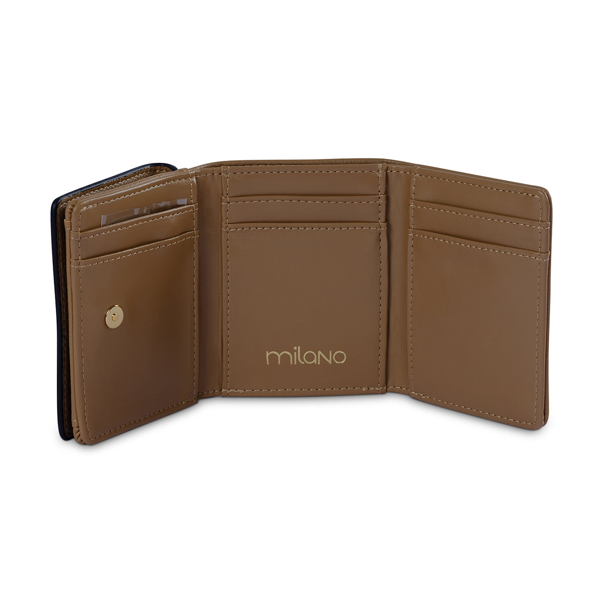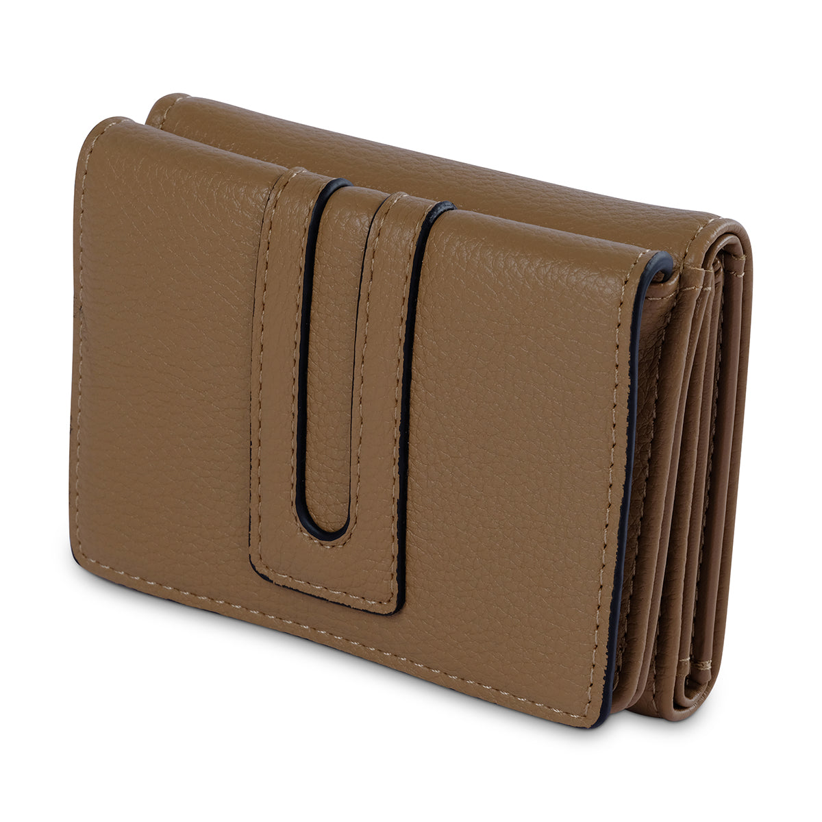 The 'Karisma' wallet is the perfect companion to the matching tote. Made from a durable, textured material in a matching taupe, it features a sophisticated front strap detail and a secure snap closure. Its compact design is ideal for keeping your cards and cash organized with a touch of elegance.